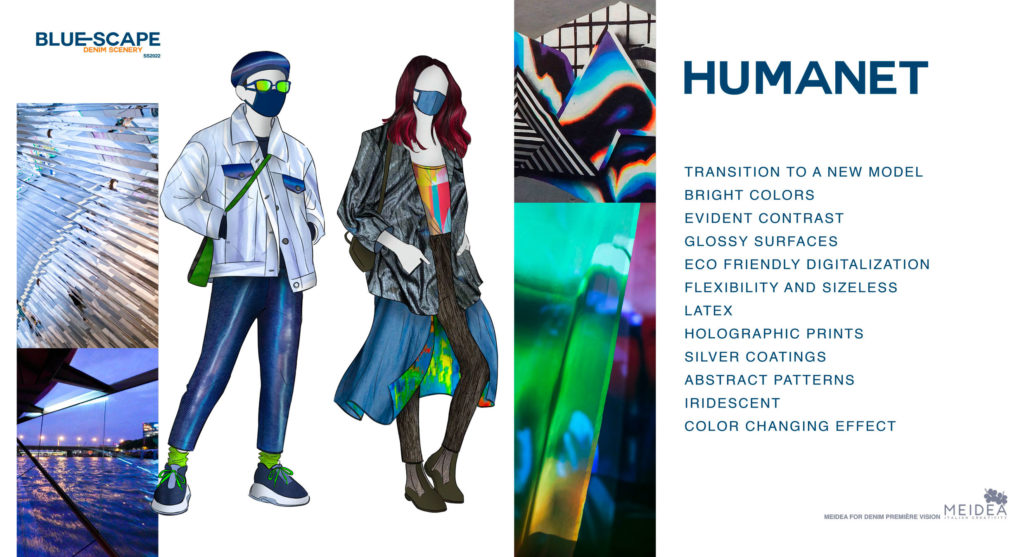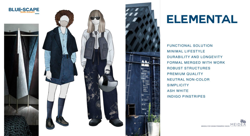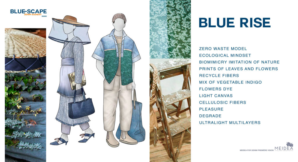 In questa esperienza, il team Meidea ha espresso le linee guida di outfits e silhouettes della stagione Primavera Estate 2022. Le future tendenze del denim si esprimono in BLUE-SCAPE attraverso 5 temi fondamentali, che raccontano i lifestyle contemporanei: Leisurewell, Creatorya, Blue Rise, Humanet, Elemental. Ogni mood board è accompagnato dalle parole chiave che ne identificano lo stile e ispirazioni e completato dalla selezione di outfits disegnati a mano e digitalizzati dal nostro staff, con l’utilizzo di fotografie, texture e dettagli provenienti dai nostri viaggi e archivio.