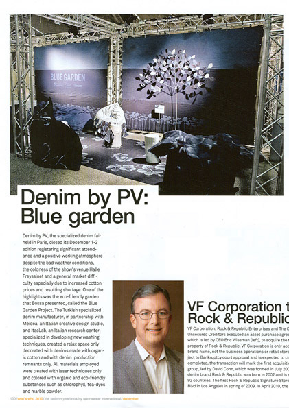 BlueGarden è stata la prima cooperazione tra il nostro studio creativo, l’azienda turca di produzione di denim Bossa e la lavanderia specializzata Itaclab presso il PV Denim di Parigi durante l’inverno 2010.