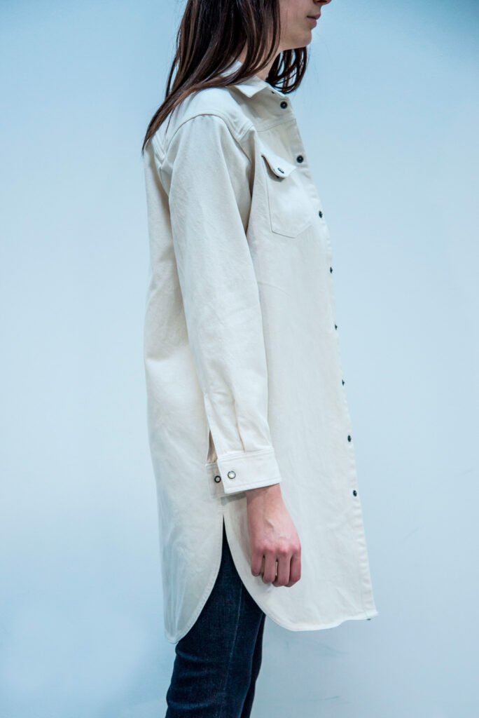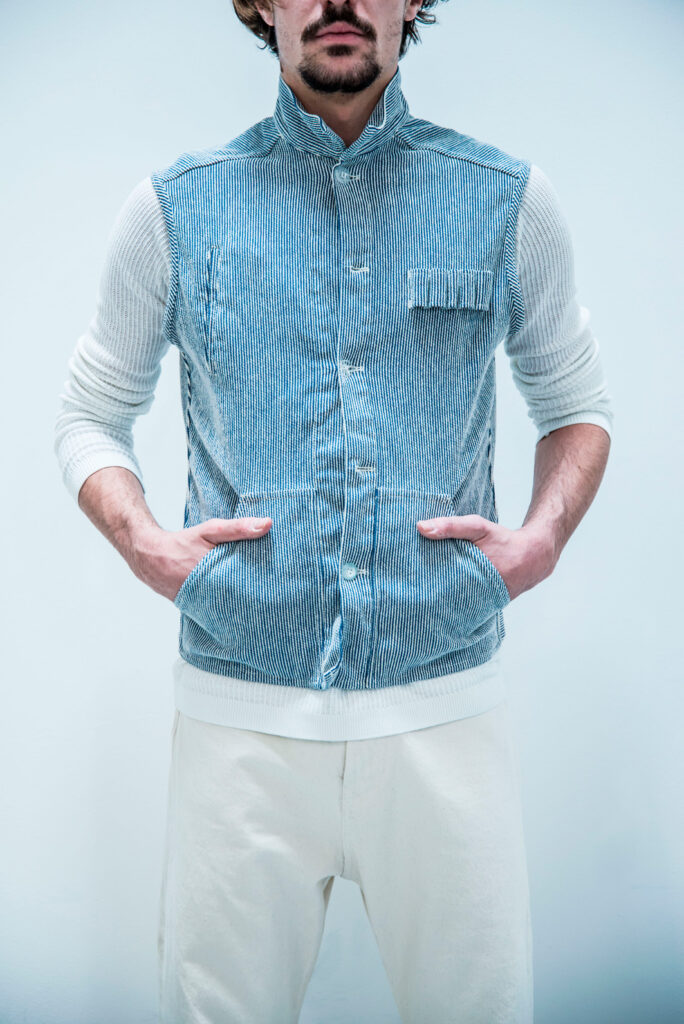 Il denim è sinonimo di tecniche di lavaggio e finissaggio che aggiungono carattere e fascino al tessuto. Tuttavia, eravamo determinati a ridurre al minimo l’impatto ambientale di questi processi. Attraverso un’esplorazione e una sperimentazione approfondite, abbiamo sviluppato tecniche che richiedevano la minor quantità possibile di energia e risorse naturali. Inoltre, abbiamo curato tavolozze di colori e tonalità di indaco che fossero in linea con l’estetica generale della collezione, garantendo una gamma coesa e visivamente accattivante.