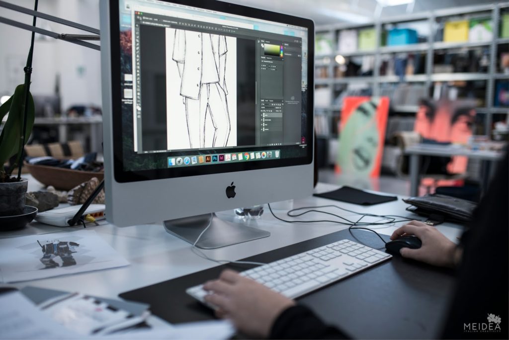Tutto il team Meidea si è impegnato nella realizzazione del seminario, dall’analisi delle sfilate, alla creazione degli outfits fino agli scatti fotografici per mood boards e presentazione finale. In foto: il momento di revisione della presentazione di RE/VOLUME insieme alla squadra.