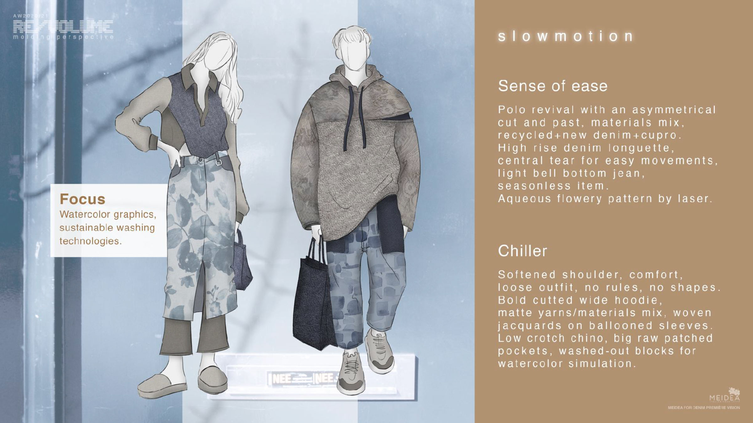 In questa esperienza, il team Meidea ha espresso le linee guida di outfits e silhouettes della stagione Primavera Estate 2022. Le future tendenze del denim si esprimono in BLUE-SCAPE attraverso 5 temi fondamentali, che raccontano i lifestyle contemporanei: Leisurewell, Creatorya, Blue Rise, Humanet, Elemental. Ogni mood board è accompagnato dalle parole chiave che ne identificano lo stile e ispirazioni e completato dalla selezione di outfits disegnati a mano e digitalizzati dal nostro staff, con l’utilizzo di fotografie, texture e dettagli provenienti dai nostri viaggi e archivio.