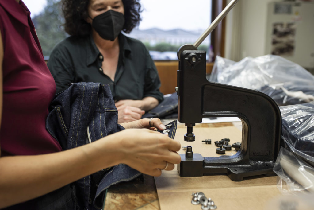 Everything is ready, the punch is on the table and Chiara follows us for the final application. I start taking backstage photos and some videos to document the team at work. Time passes, but the piles of garments seem to never end. We already think that we will not be able to complete everything in time.