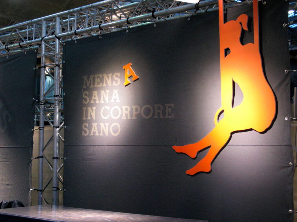 This relax&eco-friendly area recreated an old style gym, with anatomical tables and exercises schemes.