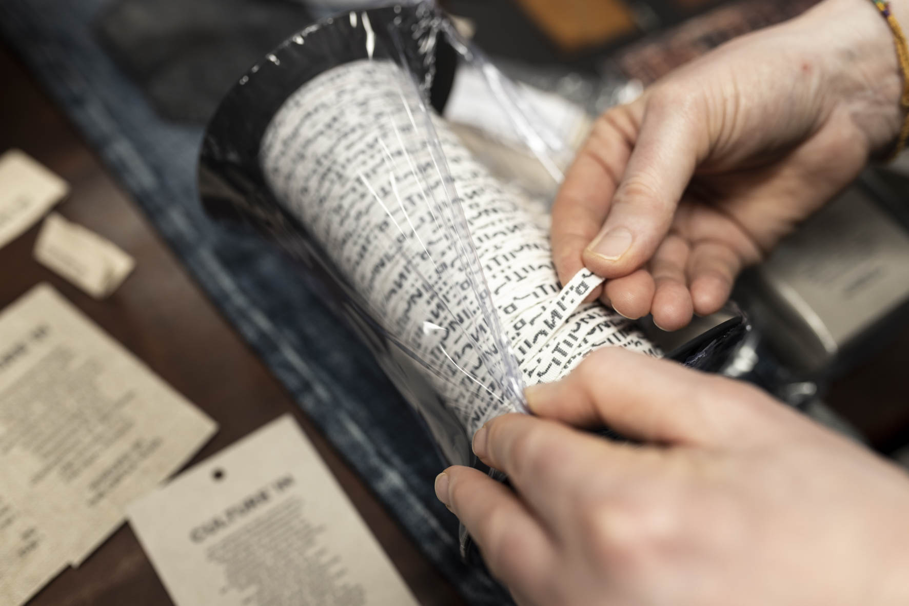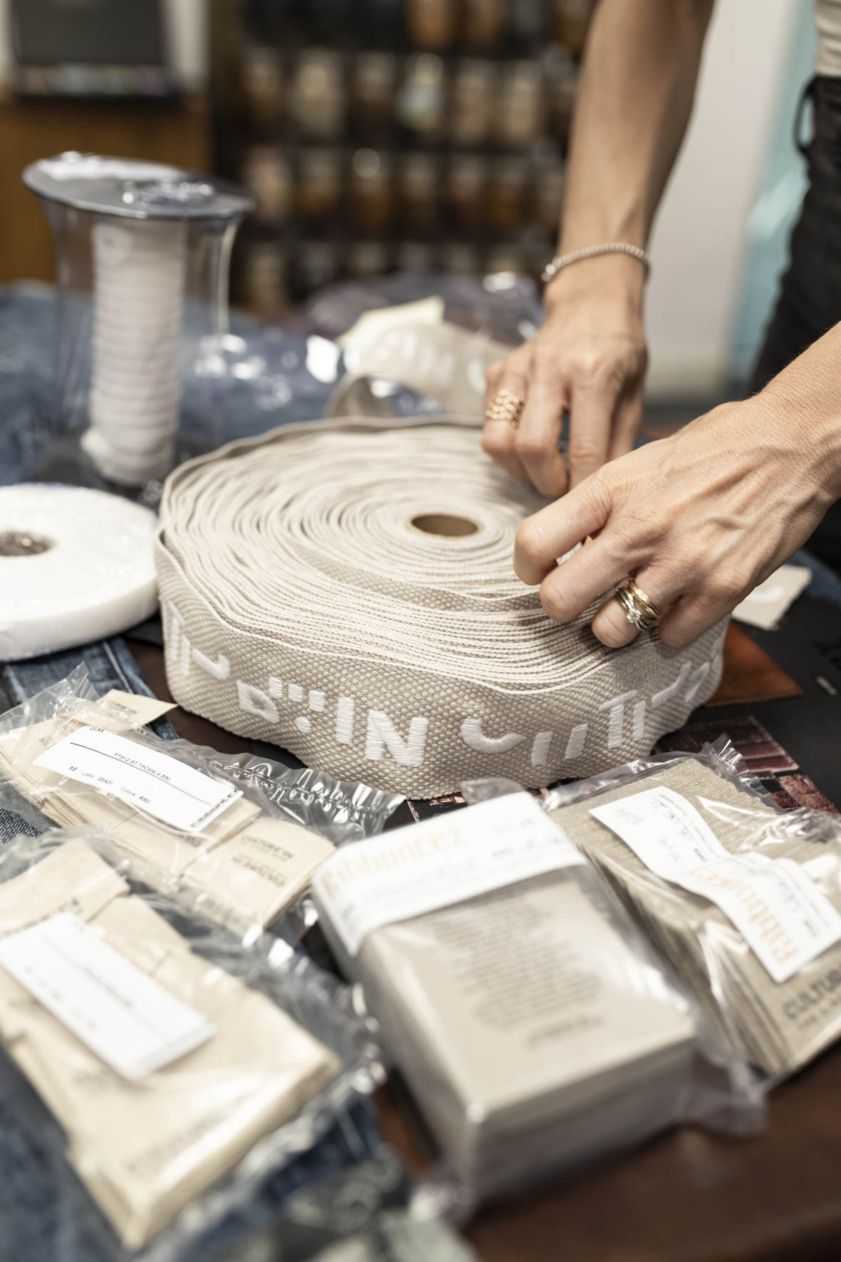 Lucia checks the CALIK DENIM and ROYO textiles shrinkage.