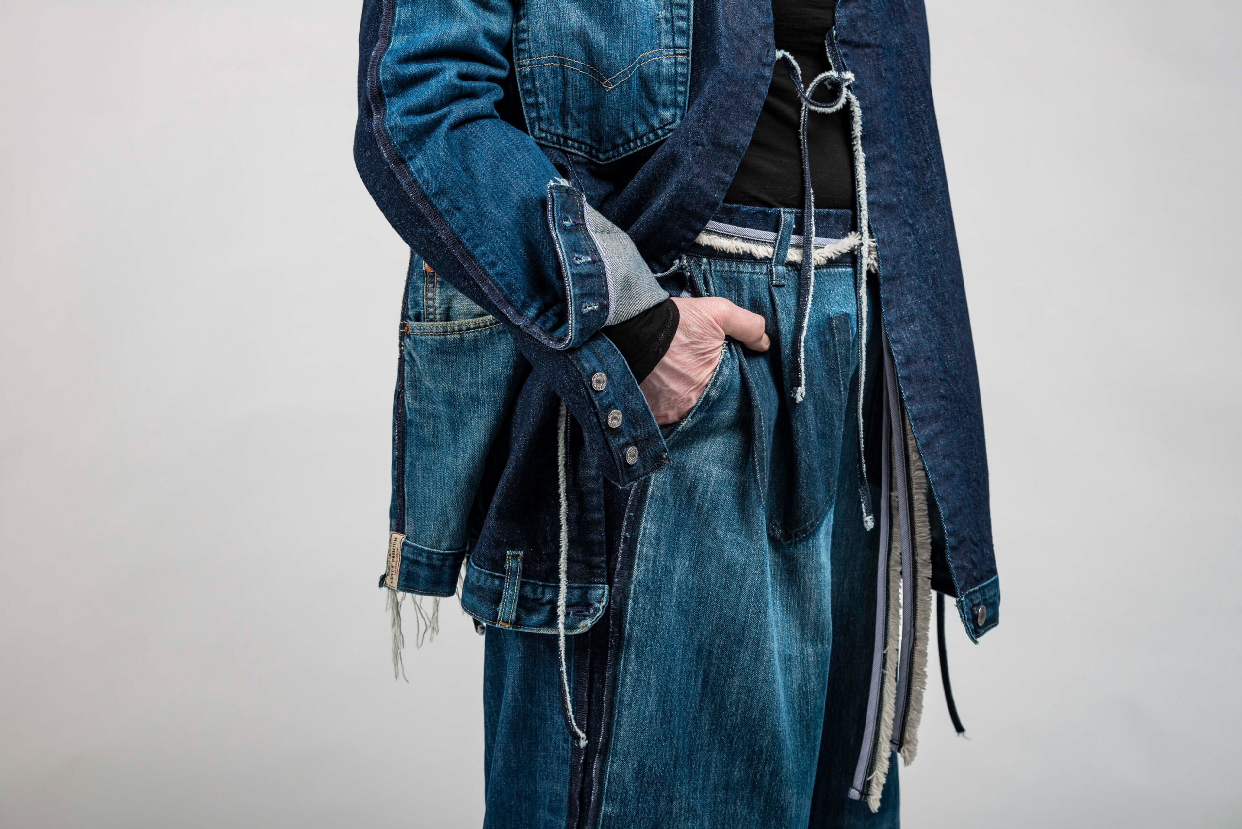 This is the recycled outfit created for THE FUTURE FITS FORUM SERIES: a challenge to combine existing stocks of the iconic Levi’s 501 with a new responsible technological fabric to create a totally new version of the future.
