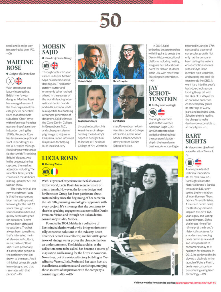 We are glad to announce that Lucia is in “RIVET 50” as “best denim influencer”.