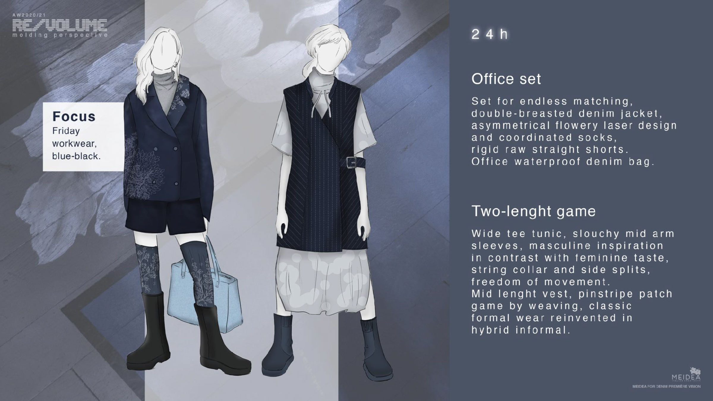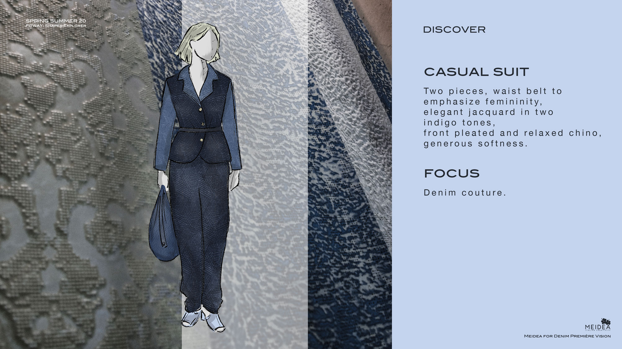 In the video of our trend seminar at Denim Première Vision in Milan in May 2019, Lucia analyzes the outfits and denim volumes of the AW 20/21 season. In the presentation there are only unpublished contents: from the drawings of the outfits to the photos, each material is original and collected by the Meidea Dream Team.