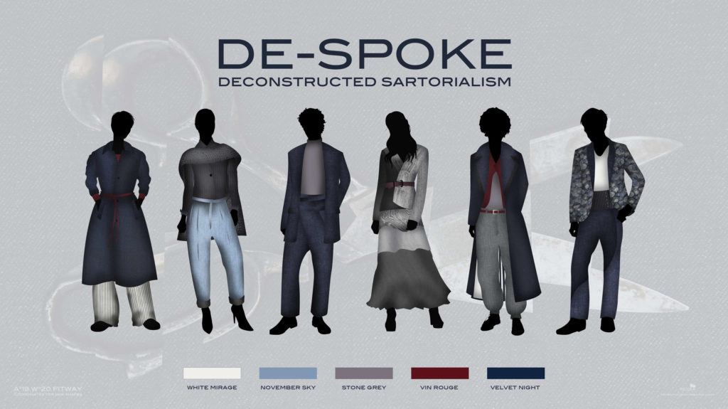 The outfits designed and digitally processed by our Team are contextualized in the general concept through 5 trend themes. Each outfit is accompanied by keywords, mood photos of personal research and focus on the stylistic details of the clothing items.