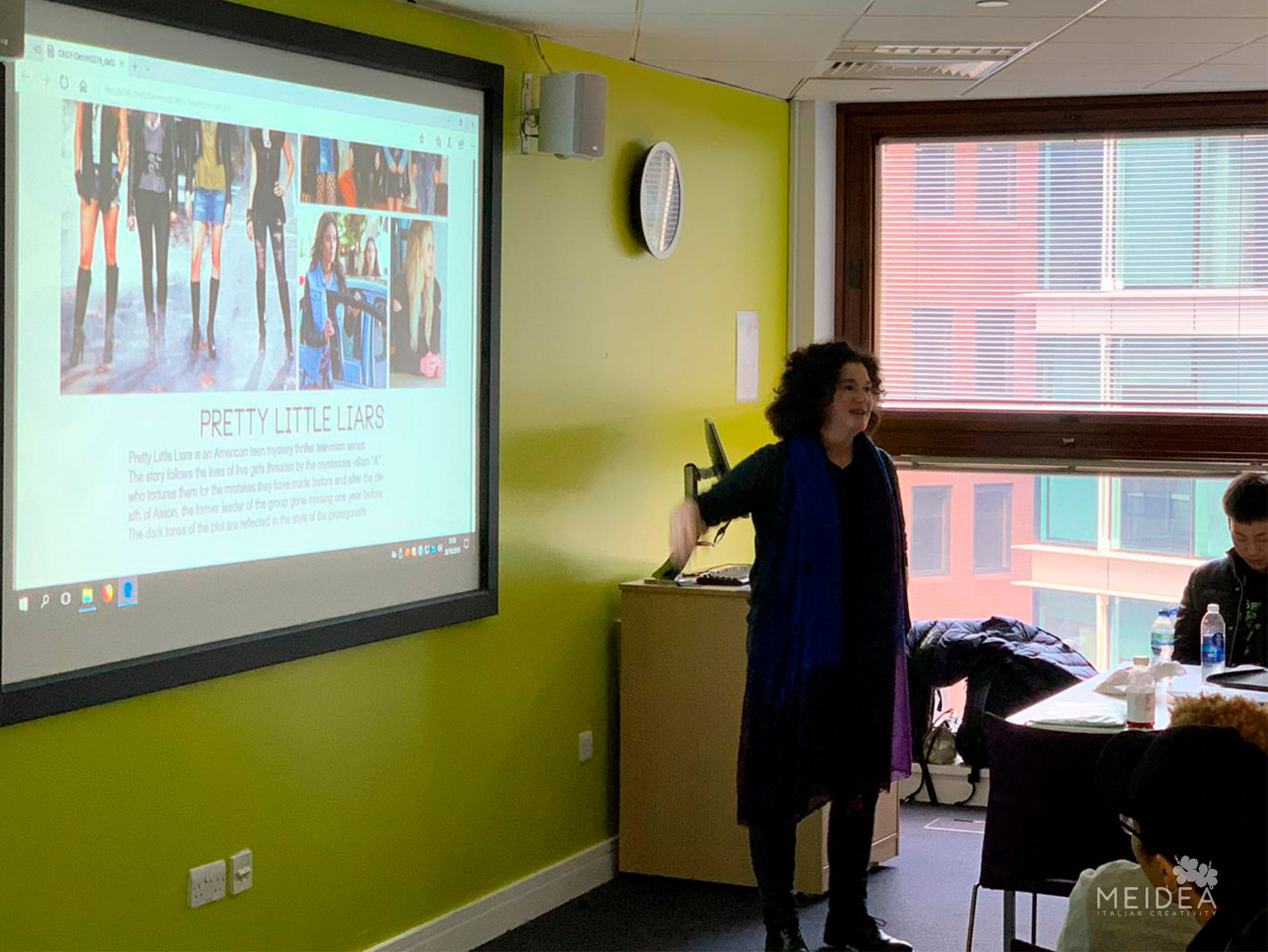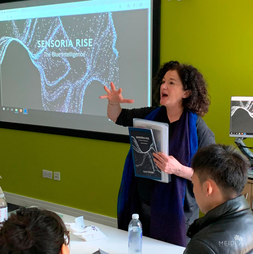 Lucia Rosin ha affrontato l’importanza dello sviluppo progettuale di consulenza stilistica idealizzando tre differenti possibili clienti: una azienda di tessuti, una fiera internazionale e un brand. La lezione è stata sviluppata attraverso esempi concreti di progetti realizzati dal team Meidea negli ultimi anni, una visione completa per fare comprendere al meglio il percorso da sviluppare, dal concetto di base sino alla sua finalizzazione.