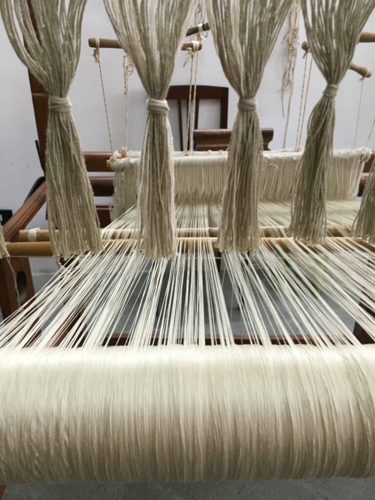 “I telai in legno di metà ‘800 sono il cuore della nostra azienda; entrate nel cortile e ascoltate il suono: è come sentire il battito di un cuore. Ci sono 14 telai a mano “ortogonali”, arrivati in azienda grazie alla lungimiranza di nostra nonna Erina, che volle introdurli poco dopo la guerra. Lavoriamo con i nostri telai per assicurarci che qualcosa non vada perso, lavorando al ritmo più lento che abbiamo scelto per produrre i nostri tessuti oggi.”